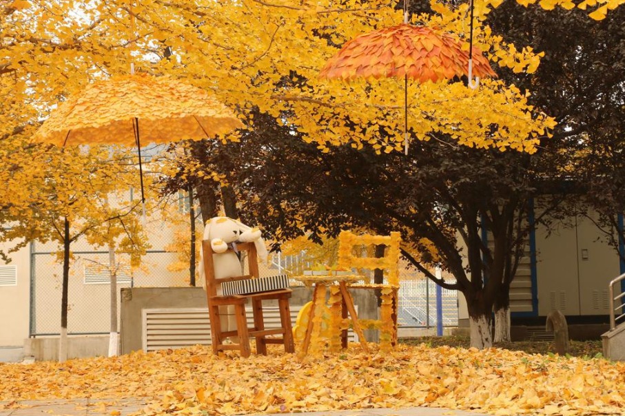- Cleaning staff transform fallen ginkgo leaves into campus art sensation