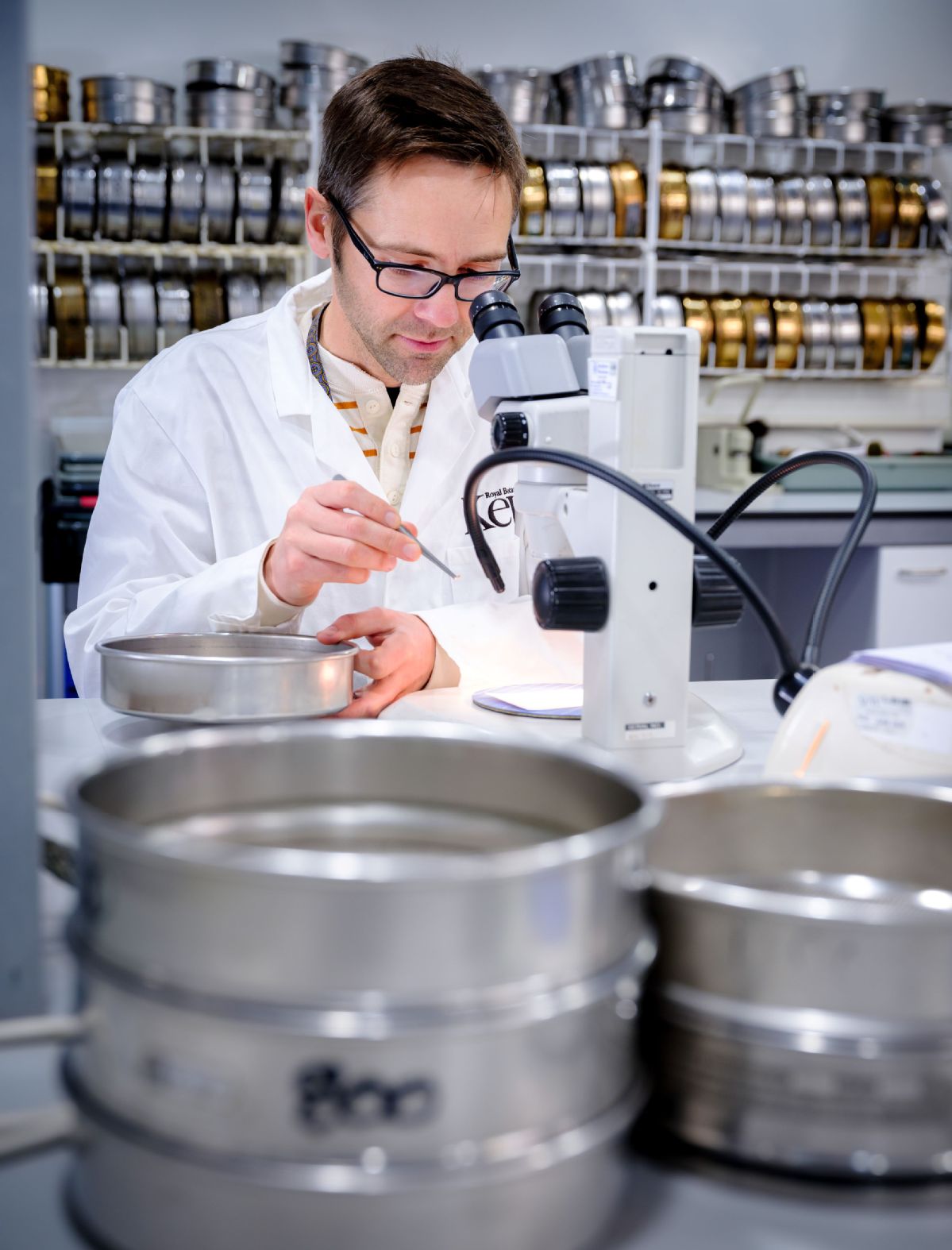 A researcher works with the seeds in the MSB. [Jim Holden/RBG Kew]
