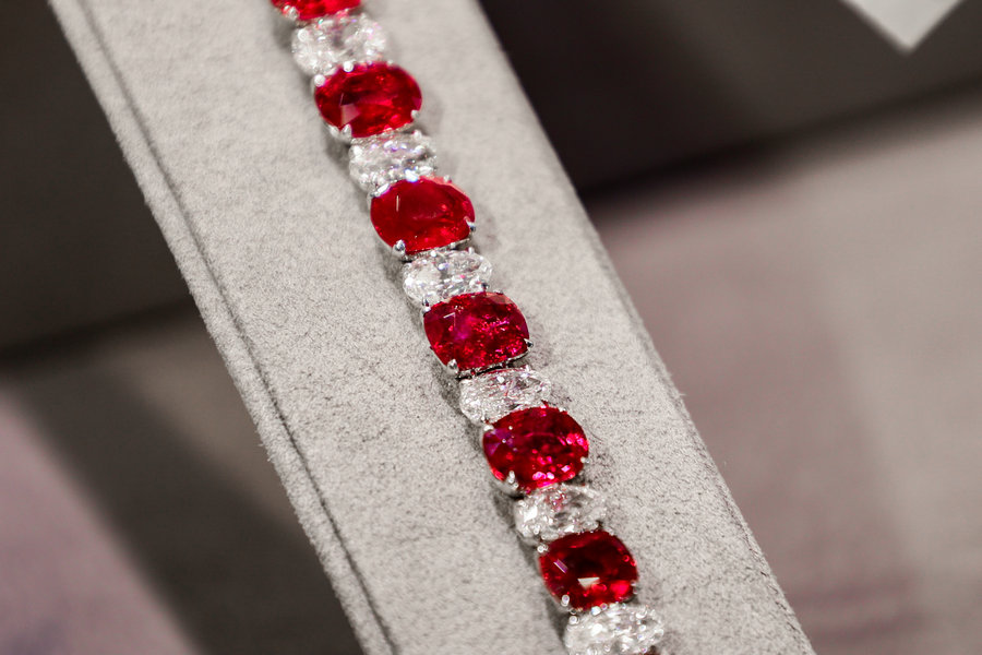 The ornate tutti-frutti pair will appear in one of several luxury item auctions by Christie's of Hong Kong at the end of this month. The auction hammer will come down at the sale of selected jewels adorned with dazzling gems and diamonds, showcasing the distinctive aesthetics of noted designers such as Harry Winston.