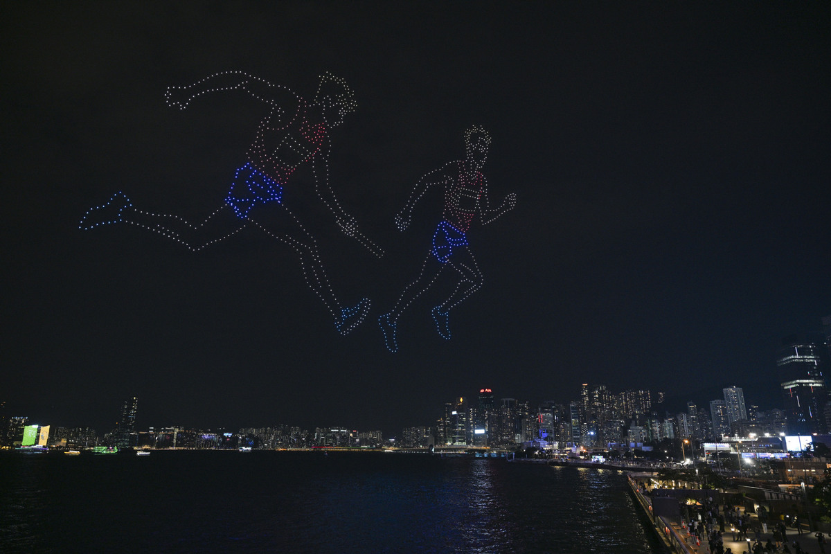 Drone light show celebrating spirit of sports staged in Hong Kong