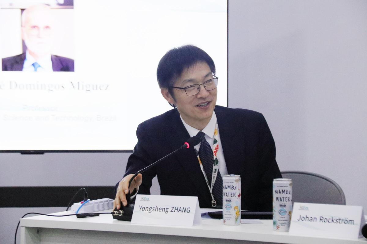 Zhang Yongsheng, director of the Research Institute for Eco-civilization at the Chinese Academy of Social Sciences, addresses the side event themed the Net-Zero Emission Transition Led by Global Green Actions on Monday, which was held on the sidelines of this year's United Nations Climate Change Conference in Belem, Brazil. [Photo by Hou Liqiang/chinadaily.com.cn]