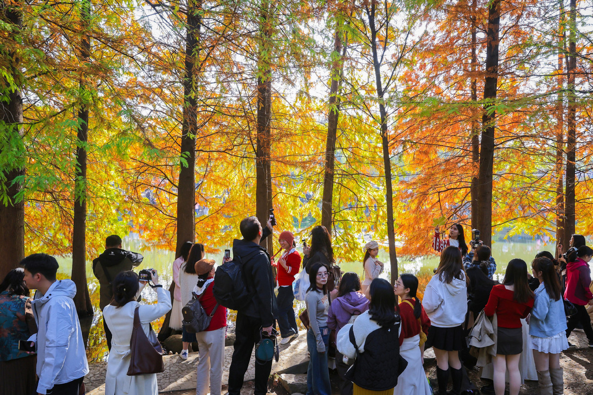 Tourists enjoy sightseeing at the scenic spot of the imperial Xiaoling Mausoleum, the burial site of the Ming Dynasty's (1368-1644) founding emperor Zhu Yuanzhang, in Nanjing, East China's Jiangsu province, on Nov 16, 2025. [Photo/Xinhua]