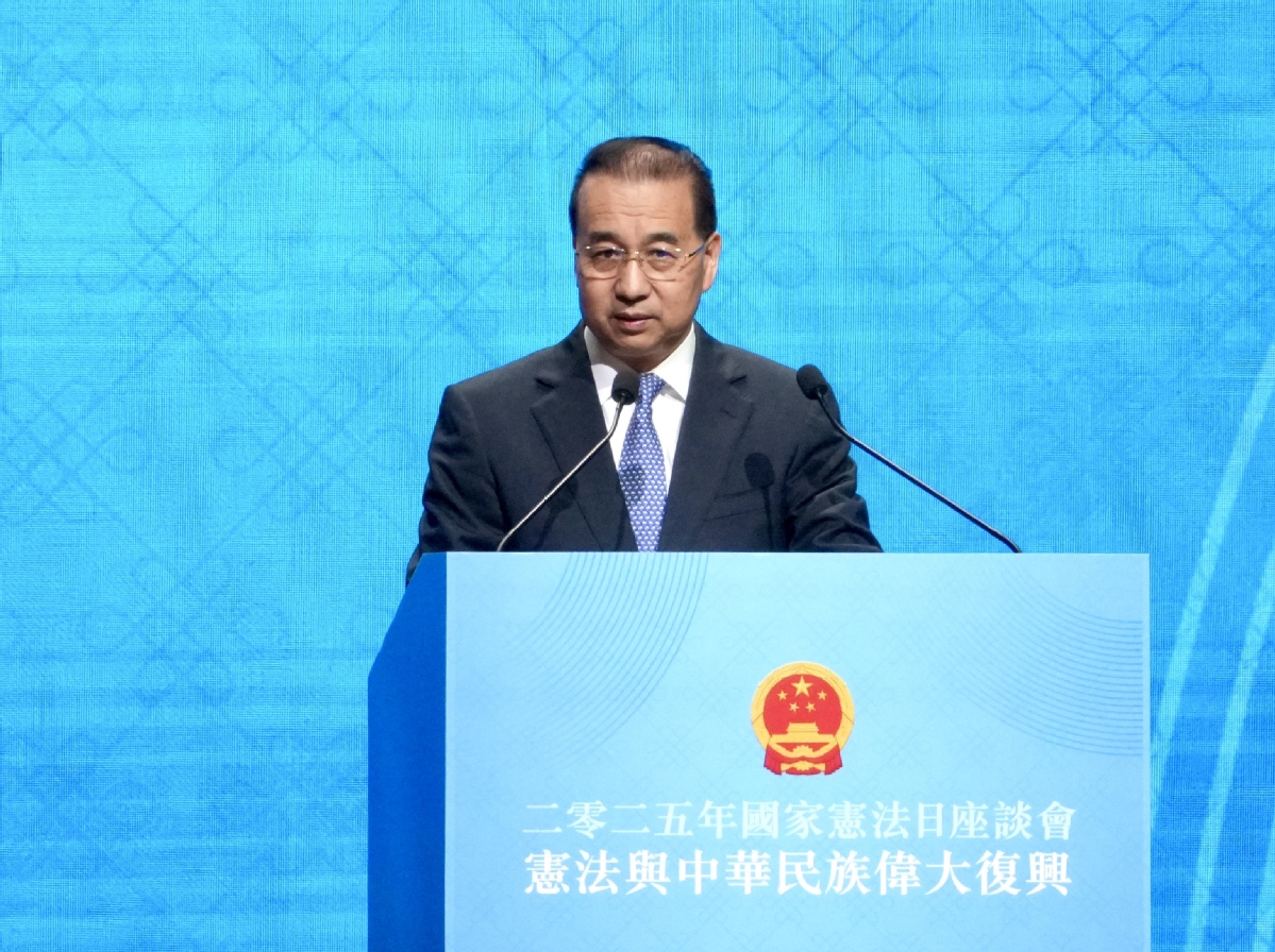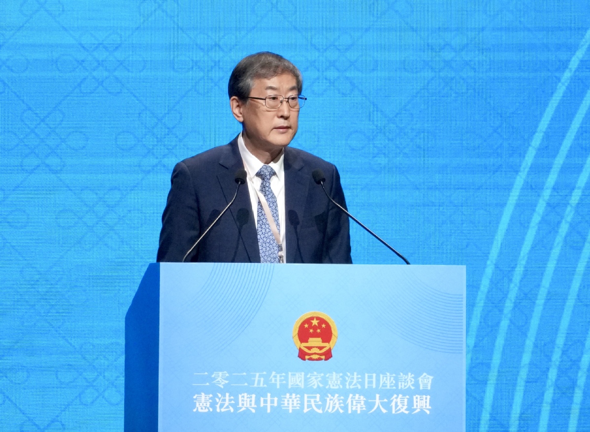 Liu Guangyuan, deputy director of the Liaison Office of the Central People's Government in the Hong Kong Special Administrative Region, delivers a speech at the 2025 Constitution Day seminar, themed "The Constitution and the Great Rejuvenation of the Chinese Nation", at the Hong Kong Convention and Exhibition Centre in Wan Chai on Dec 4, 2025. [ADAM LAM / CHINA DAILY]