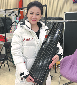 Lu with a replica of a 10-string Warring States Period guqin featured in the performance. BAI SHUHAO/CHINA DAILY