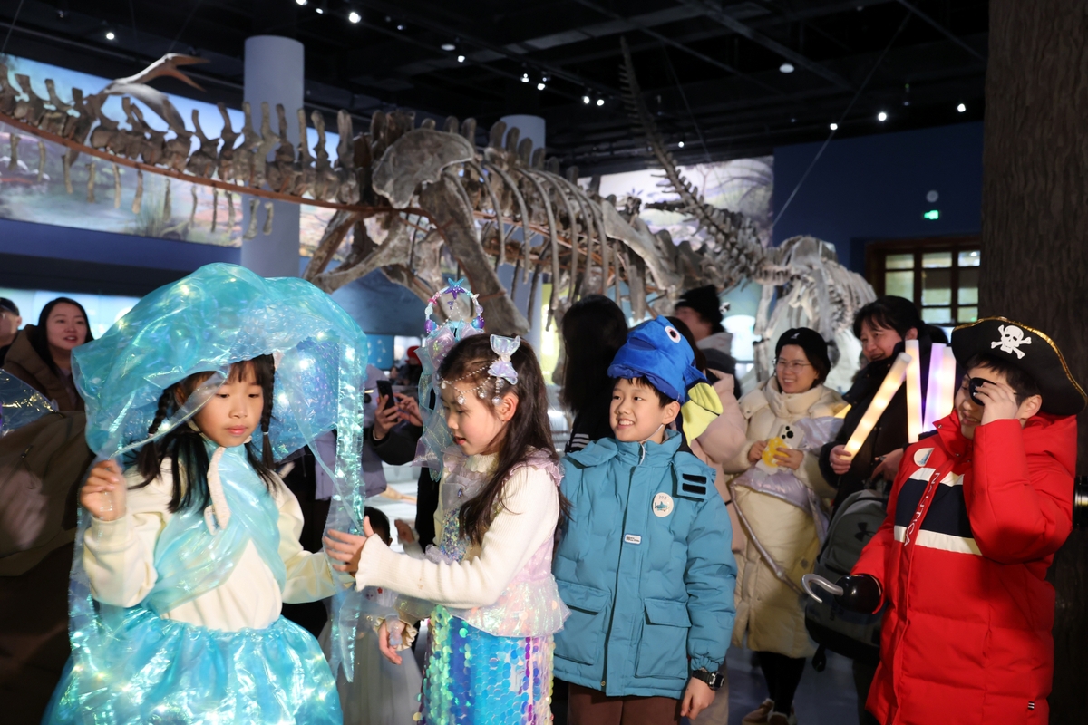 Children take part in various New Year's Eve activities at the National History Museum of China, in Beijing on Dec 31. [Photo by Wang Jing/chinadaily.com.cn]