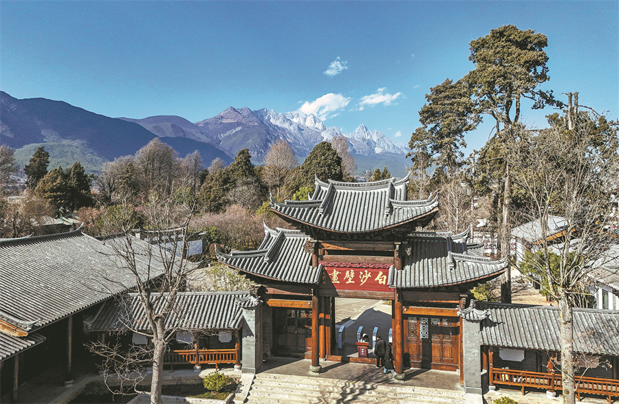 A bird's-eye view of the entrance to the Baisha Mural Museum in Baisha ancient town, known as the original settlement of the Naxi ethnic group in Lijiang.[Photo provided bu Gao Yongwei/Wang Guansen/Xinhua]