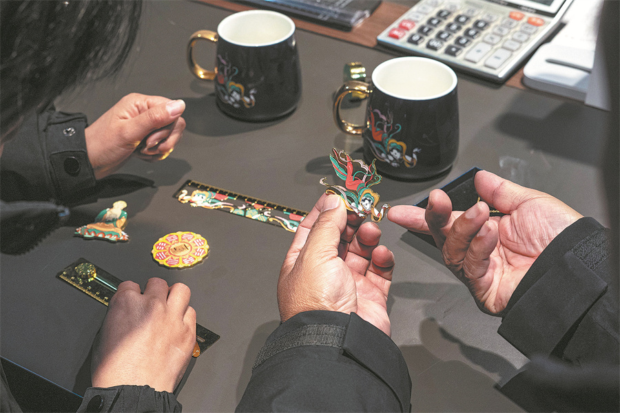 Cups, refrigerator magnets and rulers inspired by Baisha murals are designed to attract younger visitors.[Photo provided bu Gao Yongwei/Wang Guansen/Xinhua]