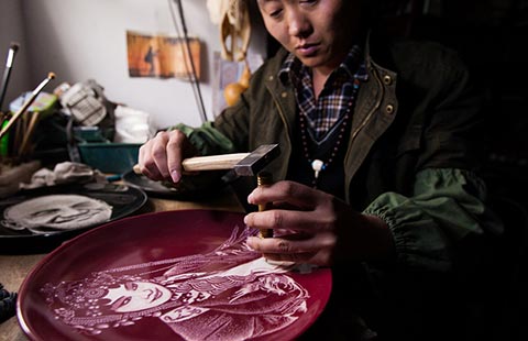 Intricate pictures carved on porcelain