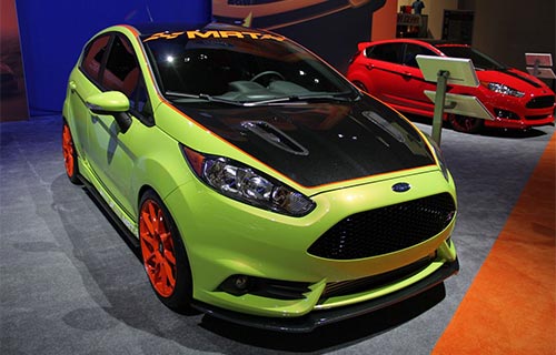 A modified 2014 Ford Fiesta ST named Forza 5 by MRT Performance is displayed at the SEMA Show taking place from Sunday to Friday at the Las Vegas Convention Center in the United States.
