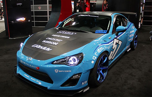 A modified Scion FR-S, known as Toyota 86 in Chinese market, is displayed at the SEMA Show taking place Tuesday through Friday in the United States.