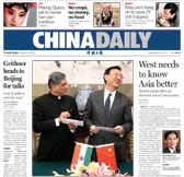 Copyright 1995 - 2010 . All rights reserved. The content (including but not limited to text, photo, multimedia information, etc) published in this site belongs to China Daily Information Co (CDIC). Without written authorization from CDIC, such content shall not be republished or used in any form. Note: Browsers with 1024*768 or higher resolution are suggested for this site.