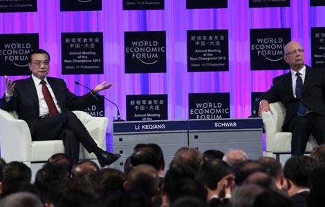 Chinese Premier Li Keqiang on Wednesday delivered a speech at the opening ceremony of the seventh Annual Meeting of the New Champions, also known as the Summer Davos Forum. -