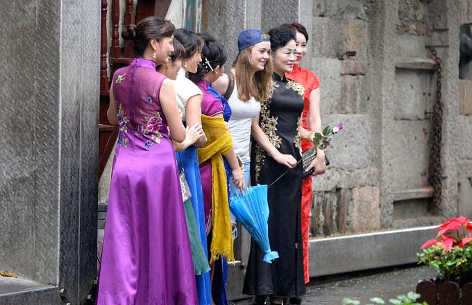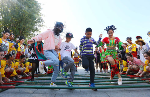 Yang Siyu arranges colorful threads as he follows custom of Dong people to carry out a ceremony on completion of a wooden pavilion at Minzu High School in Liuzhou, South China's Guangxi Zhuang autonomous region, April 25, 2017. Yang Siyu, 62, was born in a carpenter family. Dozens of years of training has made him a carpenter master in building wooden architecture of Dong ethnic style. He designed more than 100 stilted buildings, 12 shelter bridges, eight drum towers and over 30 pavilions. In 2016, Yang was recognized as inheritor of carpenter techniques of Dong wooden buildings. [Photo/Xinhua] |