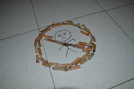 閑暇時(shí),一位同學(xué)用廣場上散落的煙頭拼出這樣的圖案