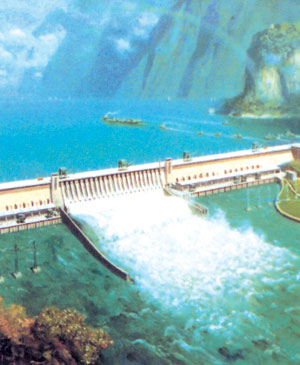 This is a bird's-eye view of the Three Gorges Reservoir. The water level will achieve its target depth of 135 meters Tuesday night, five days ahead of schedule. About 1.3 million rural and urban residents in the Chongqing Municipality and Hubei Province have made way for the gigantic project, which costs a total of 180 billion yuan. [newsphoto.com.cn]