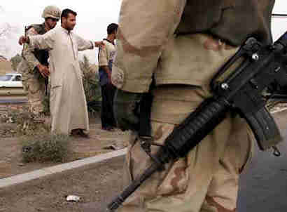 US Army soldiers search Iraqis for