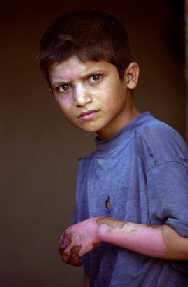 "They did not utter a single sound," he said. Borell radioed his superiors, who contacted the base hospital. Two Army doctors, both of them majors, responded. One of them, according to Borell, "looked at (Haidar) ... didn't examine him, didn't ask him questions." "(He) never looked at the girls," said Borell. "Through the interpreter, one of the doctors told the father that we didn't have any medicine here ... and were not able to provide them care," said Borell. "And he also expounded on the fact that they needed long-term care." Borell said the combat hospital was fully stocked. "Right before they left, I looked at the one doctor, asked him if he could at least give them comfort care," said Borell. "He told me they were not here to be the treatment center for Iraq." "He didn't show any compassion," the sergeant added. Borell grabbed his first-aid kit and gave the father some bandages and IV solution to clean the wounds. Mutlaq, who grows oranges and apples with water he gets from the Tigris River, laughed when he recalled the doctor's words. "He lied," Mutlaq said. "The world's greatest power going to war without burn medicine? Who can believe that?" Mutlaq took the children the next day to Baghdad for treatment. Budur, a chubby, giggly child with light brown eyes, seems to have recovered except for a large scab on her right arm. Ahlam and Haidar are covered with yellowish scabs scattered over raw red flesh. Haidar keeps his left fingers bent and hops on his left leg because it's too painful to use the right one. A smile rarely leaves his face despite the discomfort. Mutlaq said he often hears the children whimper at night from the pain. Despite their suffering, Mutlaq said he feels no bitterness. "How can I not love the Americans? They helped me with a flat tire the other day," he said. Borell said he felt betrayed by the Army, which he joined after high school. Besides the letter to his wife, he also wrote to his congresswoman and several media outlets describing the incident. His superiors have not said a word, said Borell, "although I get the impression that they're probably not very happy." Borell's wife gave him a silver bracelet that says: "Duty, Honor, Country."
