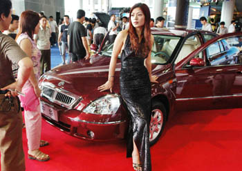 talks with a car model on June 27, 2003 , at the Ningbo Press and Culture