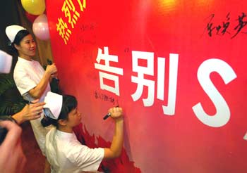 battle against SARS, signs on a board named "Farewell SARS" in a