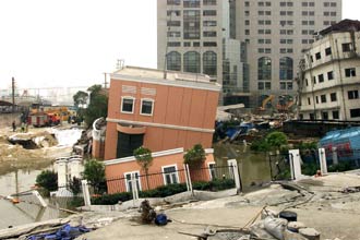against flooding, tumbled at Thursday noon due to the combined effects of
