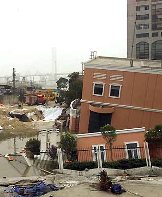 below the wall. The collapse was caused by work on nearby cross-river rail