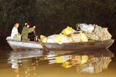 is evacuated by boat at night due to the swollen Pihe and Xiaopihe, two