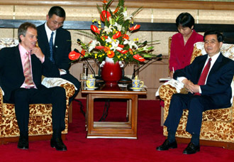Blair, on his first trip to China since he renewed his term of office in 2001, met separately Monday with his Chinese counterpart Wen Jiabao, President Hu Jintao and Central Military Commission Chairman Jiang Zemin. During the meeting with Wen, Blair said that in the past six years the "one country, two systems'' policy has yielded very good results, noting that the British side appreciates the Chinese side's treatment of recent problems in the Hong Kong Special Administrative Region (SAR). Britain hopes the Chinese side will find a way to maintain Hong Kong's stability and pledges to make its own efforts to this end, Blair added. A large number of Hong Kong residents took to the streets on July 1, the sixth anniversary of Hong Kong's return to China, to express their concerns on the proposed legislation of the National Security Bill which is based on Article 23 of the Basic Law of the Hong Kong SAR. Hong Kong SAR Chief Executive Tung Chee-hwa said on July 5 that the Hong Kong SAR government has decided to introduce three amendments to the draft National Security Bill. Wen said yesterday that facts have proven that the practice of "one country, two systems'' has been implemented successfully in Hong Kong, and has won international acclaim. He said he hoped that "concerned countries'' would do more to support Hong Kong's stability and development. Wen said that in the past more than six years, the Chinese Government has, strictly in accordance with the Basic Law of the Hong Kong SAR, completely implemented the principles of "one country, two systems,'' "Hong Kong people governing Hong Kong,'' and a high degree of autonomy. Hong Kong maintains economic stability and development although it suffered a lot from the Asian financial crisis, the global economic slowdown and SARS, said Wen, adding that Hong Kong people's legal rights and freedoms are fully guaranteed. He stressed that a stable and prosperous Hong Kong is not only in the interests of all Chinese people including Hong Kong compatriots, but also conducive to foreign interests in Hong Kong. On bilateral relations, Wen said Sino-British relations have developed noticeably in recent years and bilateral co-operation between the two countries in various areas has also proven fruitful.