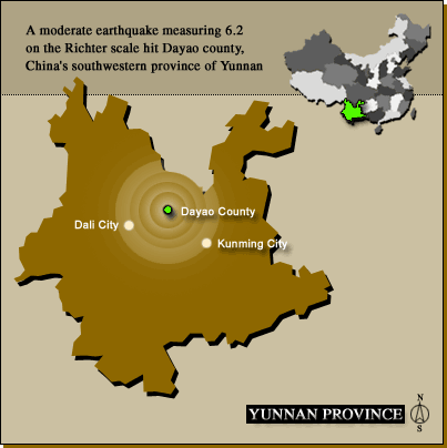 Earthquake rattles southwest China, 12 dead ( 2003-07-22 13:45) (Agencies)