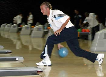 Real Madrid's David Beckham and Ronaldo play bowls