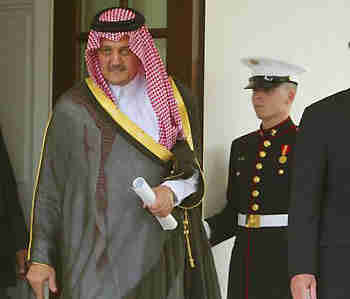 The Saudis saw publication of the 28 pages as a chance to clear their kingdom's name after suggestions by some US officials of an official Saudi connection to the attacks. "Saudi Arabia is indicted by insinuation," Prince Saud told reporters at the White House. "It is an outrage to any sense of fairness that 28 blank pages are now considered substantial evidence to proclaim the guilt of a country that has been a true friend and partner to the United States for over 60 years." "The kingdom of Saudi Arabia has been wrongfully and morbidly accused of complicity," he said. "This accusation is based on misguided speculation and it is borne of poorly disguised, malicious intent." After the White House meeting, Prince Saud spoke for about an hour with national security adviser Condoleezza Rice. He said later she told him US authorities want to question Omar al-Bayoumi, an employee of the Saudi aviation authority who befriended two of the Saudi hijackers on their arrival in California. Unclassified sections of the report released last week said that al-Bayoumi paid many of the expenses of two hijackers, "had access to seemingly unlimited funding from Saudi Arabia" and was suspected of being an agent for Saudi Arabia "or another foreign power." Several lawmakers, including Sen. Charles Schumer, D-N.Y., have urged Bush to request that al-Bayoumi be returned from Saudi Arabia for questioning. Prince Saud said he replied to Rice that FBI and CIA agents in Saudi Arabia could freely question al-Bayoumi, who has been questioned already by American, British and Saudi investigators. "We are glad that the president has asked Saudi Arabia to let the FBI question Omar al-Bayoumi, but the devil will be in the details," Schumer said. "Saudi Arabia needs to allow the FBI to interrogate al-Bayoumi here in the United States and without any Saudi officials present." The White House did not immediately return a call for comment on the request to question al-Bayoumi. Prince Saud met with Bush for about 40 minutes. Vice President Dick Cheney, Secretary of State Colin Powell, Rice and Elliott Abrams of the National Security Council were present, he said. Afterward, Saud met with Rice. "He made a strong case for not publishing it," Saud said of Bush's refusal to release the 28-page segment. But, he added, "we have nothing to hide." Bush said disclosure of the 28 pages "would help the enemy" by revealing intelligence sources and methods. "There's an ongoing investigation into the 9-11 attacks, and we don't want to compromise that investigation," Bush said during a news conference with Israeli Prime Minister Ariel Sharon. "If people are being investigated, it doesn't make sense for us to let them know who they are." Senior intelligence and law enforcement officials recommended keeping the 28 pages classified, said White House spokesman Scott McClellan. A chorus of Democratic lawmakers demanded that Bush declassify the material, charging that Bush was trying to shield the Saudi royal family from possible embarrassing revelations. "Classification should protect sources and methods, ongoing investigations and our national security interests," said Rep. Nancy Pelosi of California, the top Democrat on the congressional investigation. "It is not intended to protect reputations of people or countries." "This administration has an obsession with secrecy, and this report is over-classified," she said. Sen. Bob Graham, D-Fla., a presidential candidate and the co-chairman of the congressional committee investigating the Sept. 11 attacks also called for declassification, as did fellow presidential contenders Sens. John Kerry, D-Mass, and Joe Lieberman, D-Conn. Graham said he thought Bush was motivated more by politics than by national security in refusing to declassify the material. He said he plans to press for release of the 28 pages through a law that would allow the Senate to vote to publicize the material despite the opposition of the president. Shelby said on CNN, "I think we ought to try to do it the easier way," by persuading the Bush administration to declassify it. The White House took pains to keep Bush's meeting with the Saudis as low-profile as possible. It did not list the session on Bush's schedule for Tuesday, acknowledging it only after news reports disclosed it. The White House refused to allow reporters or photographers into the meeting and rejected requests for an official photo shot by Bush's photographers.