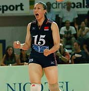 Earlier in the day, the United States took the tournament's bronze medal, beating the Netherlands in straight sets 25-22, 25-20, 28-26. A combined scoring effort from Keba Phipps, Logan Tom and Danielle Scott prevailed over dominant play from the Netherlands' Francien Huurman, who pelted the US defense with 19 points on spike. Also Sunday, host Italy beat South Korea in four sets 25-19, 25-17, 22-25, 25-13, to finish in fifth place at 1-4. South Korea, which finished at the top of its preliminary group ahead of Russia, exits the final round in sixth place at 0-5. The tournament, which was scheduled to be held in Asia, was moved to Italy earlier this year because of fears about SARS.