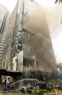 An Associated Press photographer on the scene minutes after the blast saw three badly burned bodies lying in the wreckage of a car outside the badly damaged hotel and an adjacent office building called Plaza Mutiara.