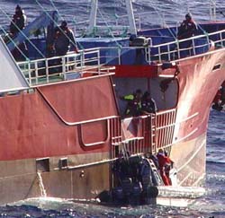Australia's Fisheries Minister Ian Macdonald said the boarding was carried out under international law. None of those aboard resisted, although the captain protested.