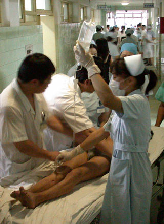on an injured man in Suzhou, East China's Jiangsu Province, August 28,