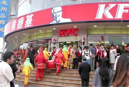 | | The 100th Kentucky Fried Chicken, KFC, chain restaurant opens in Beijing, China, Wednesday, Sept. 3, 2003. The world's largest chicken snack chain enterprise (news - web sites) KFC announced on Wednesday in Beijing and Shanghai that its chain restaurants in the two cities have surpassed 100 respectively since its entry into China in 1987. [Xinhua] |