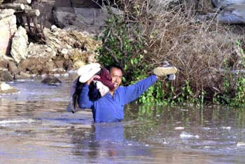 flood on Saturday, Sept 6, 2003 after a 30-meter-wide embankment of Yellow