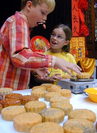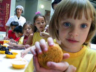 students how to make mooncakes. China's traditional Mid-Autumn Day falls