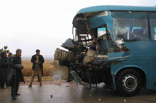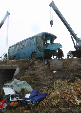 Wednesday, October 8, 2003. The bus collided head-on with another bus