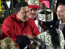 Columbus Day, October 12, is celebrated as a holiday in the United States and several Latin American nations, but Chavez said it should be remembered as the "Day of Indian Resistance." "We Venezuelans, we Latin Americans, have no reason to honor Columbus," he said. The Venezuelan leader said Spanish, Portuguese and other foreign conquerors had massacred South America's Indian inhabitants at an average rate of roughly "one every 10 minutes." He described Spanish conquistadors like Hernan Cortes and Francisco Pizarro, as "worse than Hitler." He said even the continent's geographical names, like America and Venezuela, were imposed by foreigners. Chavez's opponents, who are seeking a referendum to try to vote him out of office, say his self-styled "revolution" in the world's No. 5 oil exporter is aimed at installing an anti-U.S. system like the one in Cuba. Chavez says his brand of left-wing nationalism will make Venezuela more independent. The Venezuelan leader hailed as heroes Indian chiefs who had fought the Europeans, such as Guaicaipuro, who resisted the Spanish founders of Caracas, and Sioux chief Sitting Bull, who defeated U.S. Gen. George Armstrong Custer at the Battle of Little Bighorn in 1876. "Long live Sitting Bull!" Chavez declared, drawing applause from his audience, many of whom wore traditional native clothes and headdresses.
