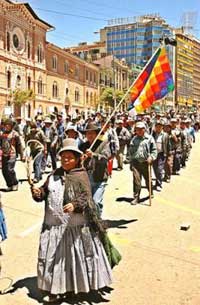 "Viva Bolivia!" demonstrators shouted in Cochabamba. Marchers tossed rocks and Molotov cocktails at government troops, torching a police office.