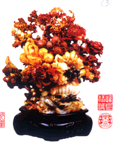 Spotlighting charms of Shoushan stones ( 2003-10-24 08:32) (China Daily) Can you imagine a stone coloured with ranges of red, yellow, white and darker shades all at once? At the ongoing "Shoushan Stone Exhibition" at the China International Exhibition Centre in Beijing, you will see 500 of these colourful stones glittering under bright lights and astonished eyes.