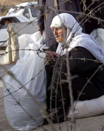 A Palestinian woman waits to pass an Israeli