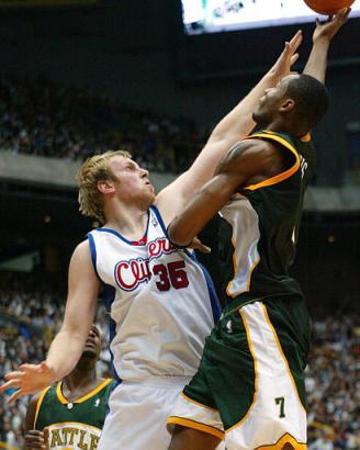 Marko Jaric hit a 3-pointer to pull the Clippers within one point late in the second quarter but Lewis came back with two 3-pointers as the Sonics took a 66-58 lead at the half.