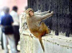 Last year the monkeys made their presence felt by hanging from window ledges and screeching at reporters arriving for a news conference with visiting U.S. Defense Secretary Donald Rumsfeld.