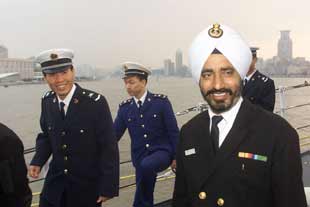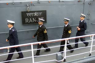 aboard an Indian destroyer INS Ranjit in Shanghai, November 11, 2003.