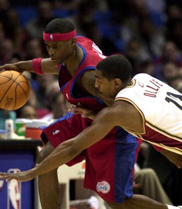 After Maggette made a free throw and Davis made his two shots, Davis stole the ball from Maggette and slammed it home.