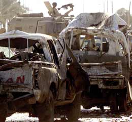 Suicide attackers have struck several times at Iraqi police. On October 27, coordinated car bomb attacks on three Baghdad police stations and the International Committee of the Red Cross killed at least 35 people. Earlier that month, two suicide bombers killed eight Iraqis at another Baghdad police station.