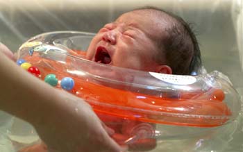dip in a pool at the "New Mother Postnatal Service Centre" in Beijing