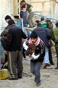 One militant was brought dead to the hospital still clutching a bomb, witnesses said. Another died of shrapnel wounds. A Palestinian policeman was shot near the border post and an onlooker was killed as he watched tanks at his window.