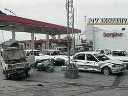 Two cars packed with explosives were driven out of two petrol stations and into the president's motorcade just 200 yards from a bridge on a main road in the city of Rawalpindi, where Musharraf escaped a bombing on December 14.